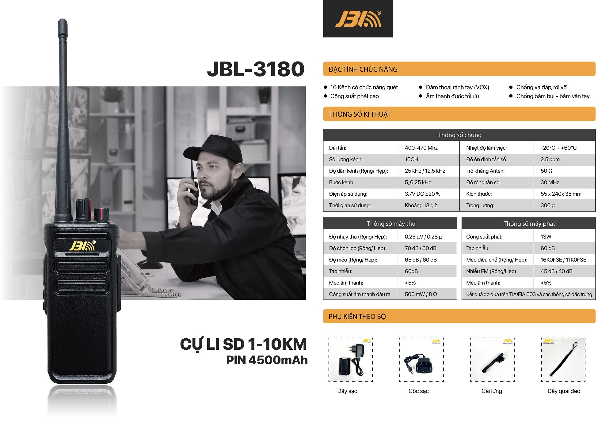 Thông số kỹ thuật máy bộ đàm JBL-3180